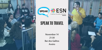ESN Aveiro and SPEAK Aveiro invite you on Thursday, 14th of November for the Speak to Travel!